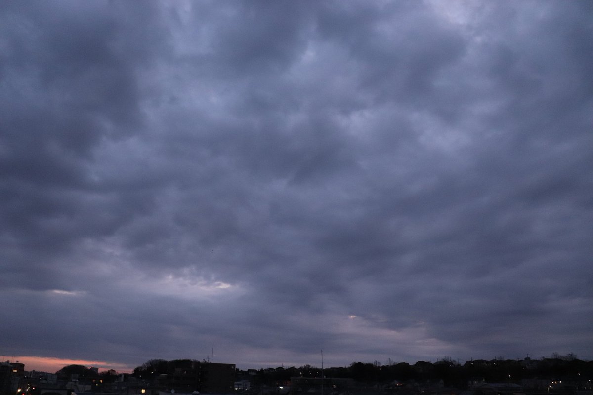低層に広がる雲、、、時間が進むと藤色に青が入り青灰に変わるのね