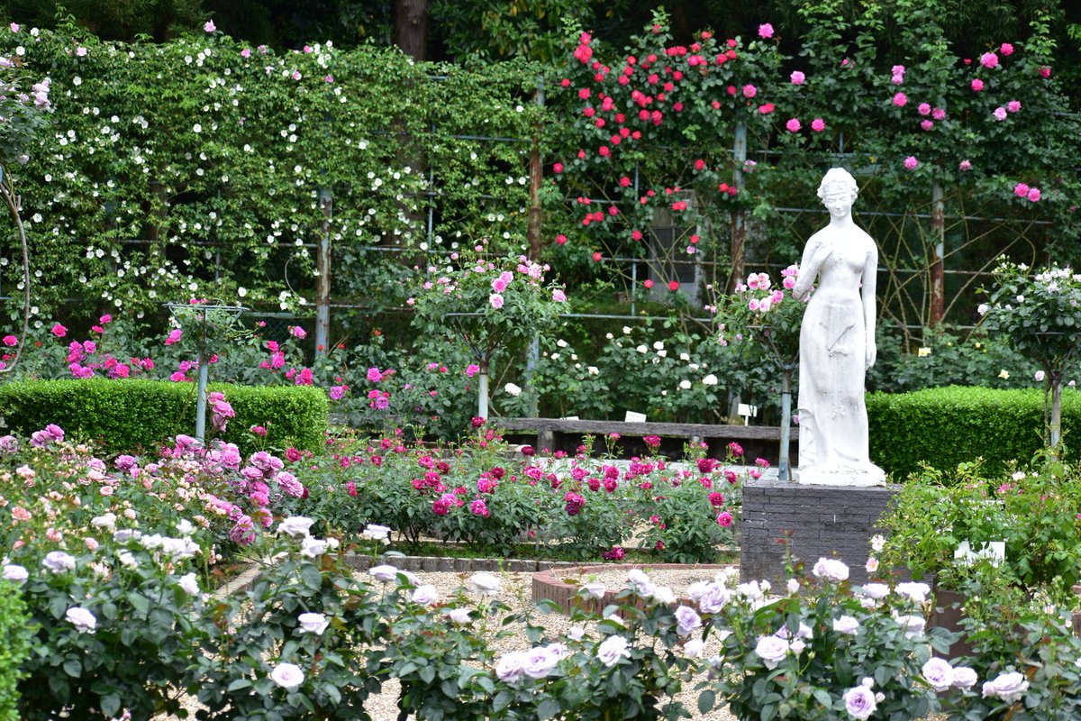 世界平和への祈りを込めた、境内のバラ園も有名です