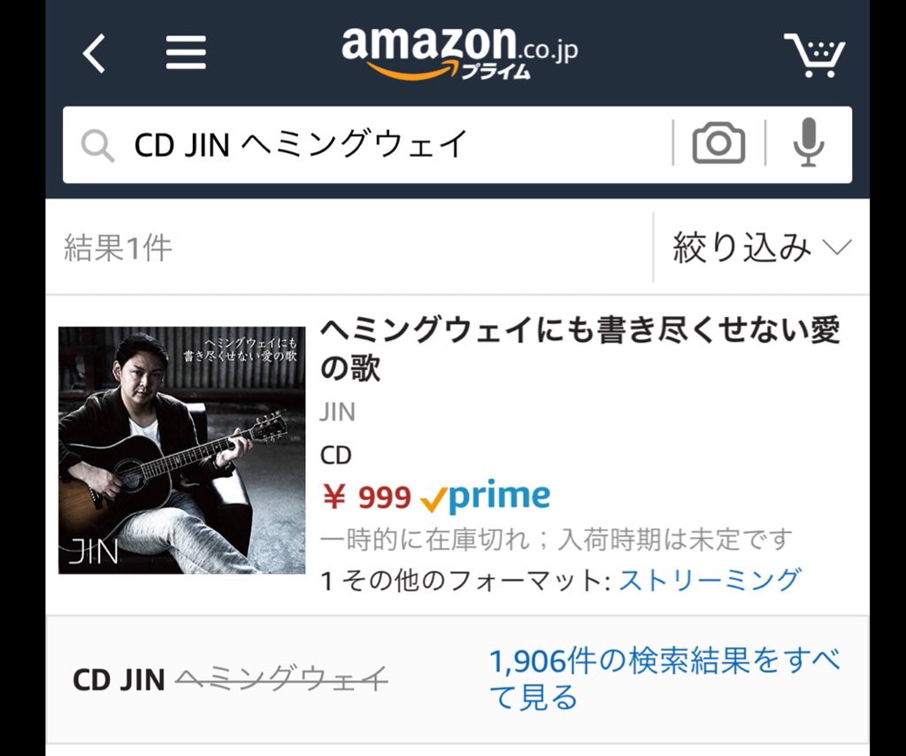 #Amazon#JIN#ヘミングウェイにも書き尽くせない愛の歌#音楽好きな人と繋がりたい pic.twitter.com/sjwrahhdAQ