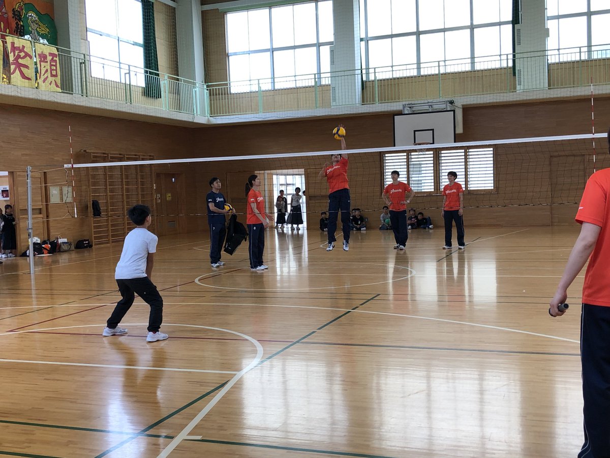 授業から給食からバレー体験まで元気な皆さんに選手も戦う元気をもらいました!松原小学校の皆さん、ありがとうございました