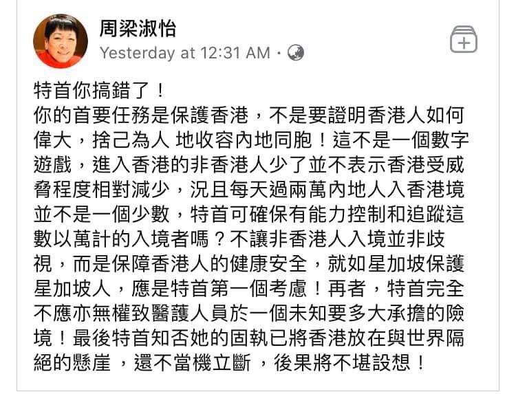 香港所有醫療用品與醫護資源都在供不應求中,政府點會此刻自己制造混亂與整個地區民眾間的對立?!所以中國政府命令港府接待來香港肺炎疫情病人的分流治療是不符合邏輯的,純屬虛構造謠