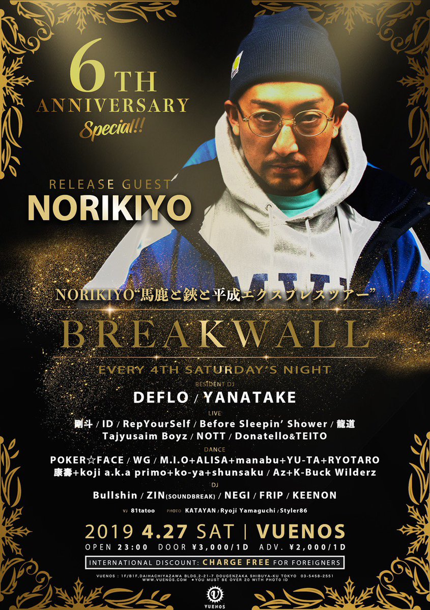 〈情報公開〉 4/27(土) “BREAKWALL” 6th Anniversary Special!! ▶︎NORIKIYO