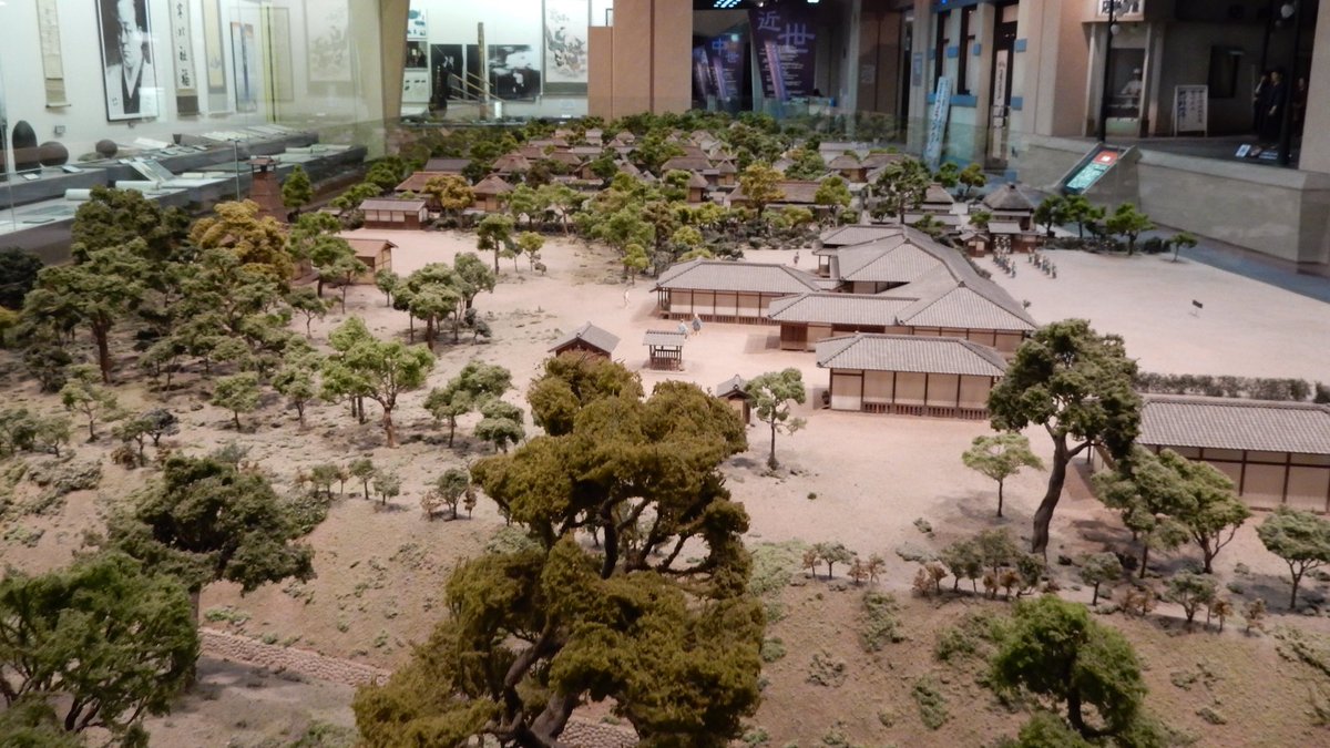 出水麓 一国一城令が出た後も、薩摩藩は100以上の外城を維持した。その最高・最大のものが、出水にあります。鹿児島県歴史資料センター黎明館で見かけた展示より ①航空写真。右端にちらっと出水城? ②③1/50縮尺の模型