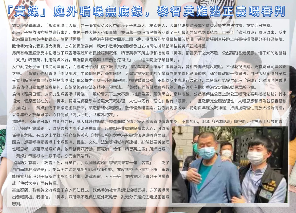 #香港 It's shameful that Li Zhiying has openly trampled on the public opinion of Hong Kong,and used the public media to accuse Hong Kong and Macao of running the office without any reason!#黎智英 pic.twitter.com/efyjmdeuu7