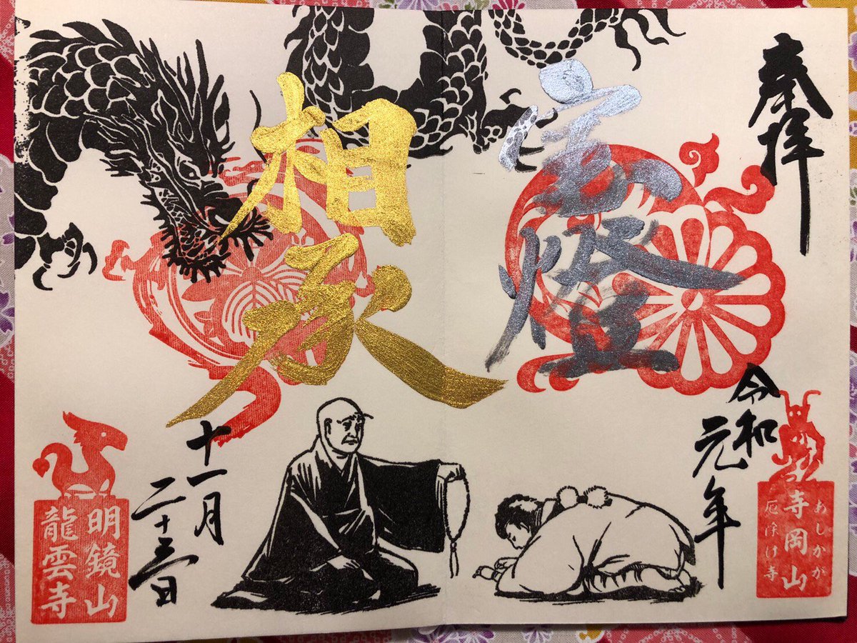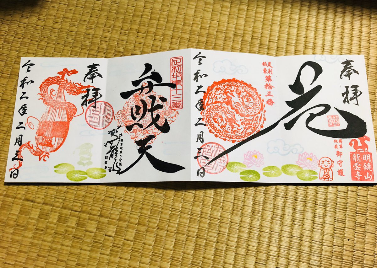 #龍雲寺 足利 こんな芸術的な御朱印を、一人で わずか5分で仕上げるご住職は天才的!待っている1時間40分 ずっと見ていても飽きなかった。時折 お話される口調から、穏やかで 暖かなお人柄を感じ、ホッコリ。 駅前の藤も美しかった! pic.twitter.com/p6i4yxfV9j