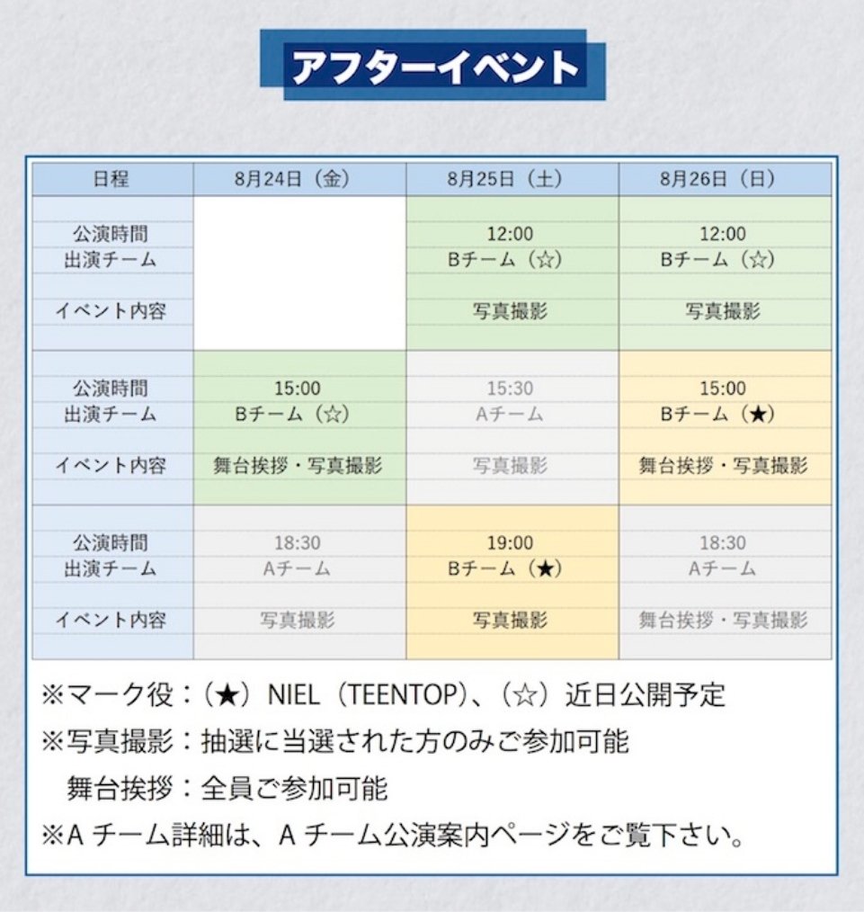 [INFO] INFINITE Dongwoo "Altar Boyz" Musical - With Super Junior Yesung, Teen Top Niel, Highlight Dongwoon, Kim Nam Ho - Benefits Aug 24 3pm (Stage Greeting, Photo Session) Aug 25 12pm (PS) / 7pm (PS) Aug 26 12pm (PS) / 3pm (SG, PS)
