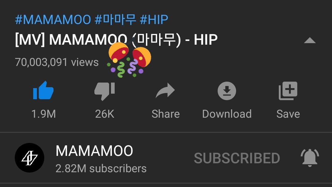 ] HIP has reached 70M views in Mamamoo's Official Channel!!