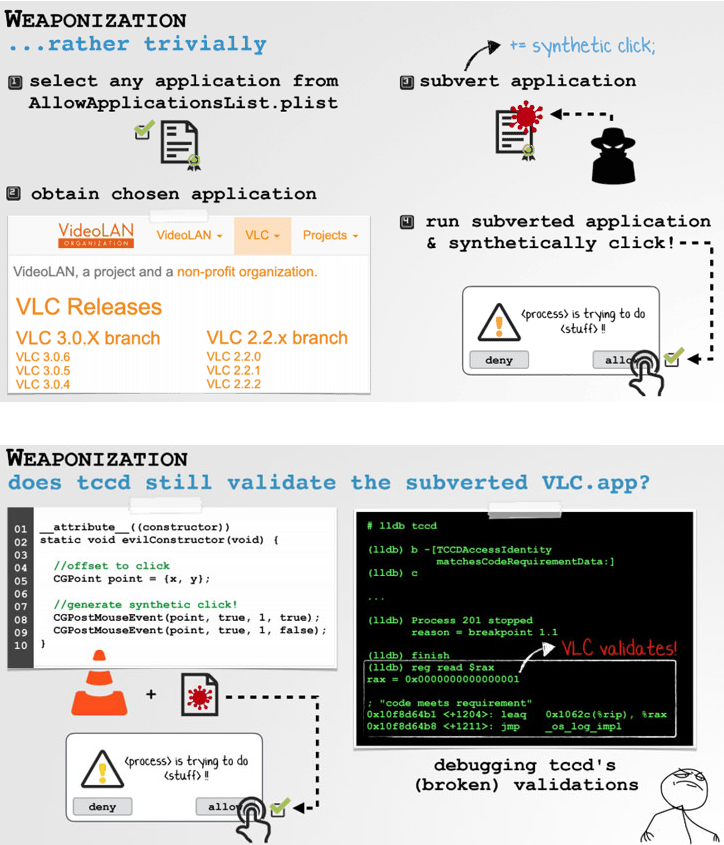 #macOS#0Day On Mojave, there is a validation flaw in the way macOS checks the integrity of whitelisted apps. The operating system checks the existence of an app's digital certificate but fails to validate if the app has been tampered with. pic.twitter.com/Ej51Un3nVs