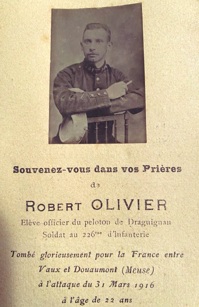 Robert Olivier, mon grand oncle, tombé le 31 mars 1916 à Douaumont à 22 ans. #11novembre pic.twitter.com/RMdALJAHUQ