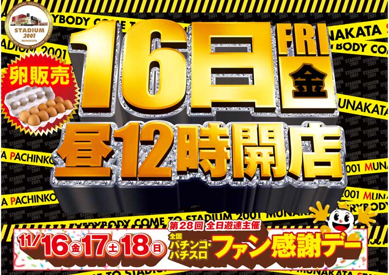 こんばんはっす!! のっきーっす!! 明日のサンカニは新台入替っす! 開店時間もいつもと違い、12時開店っす