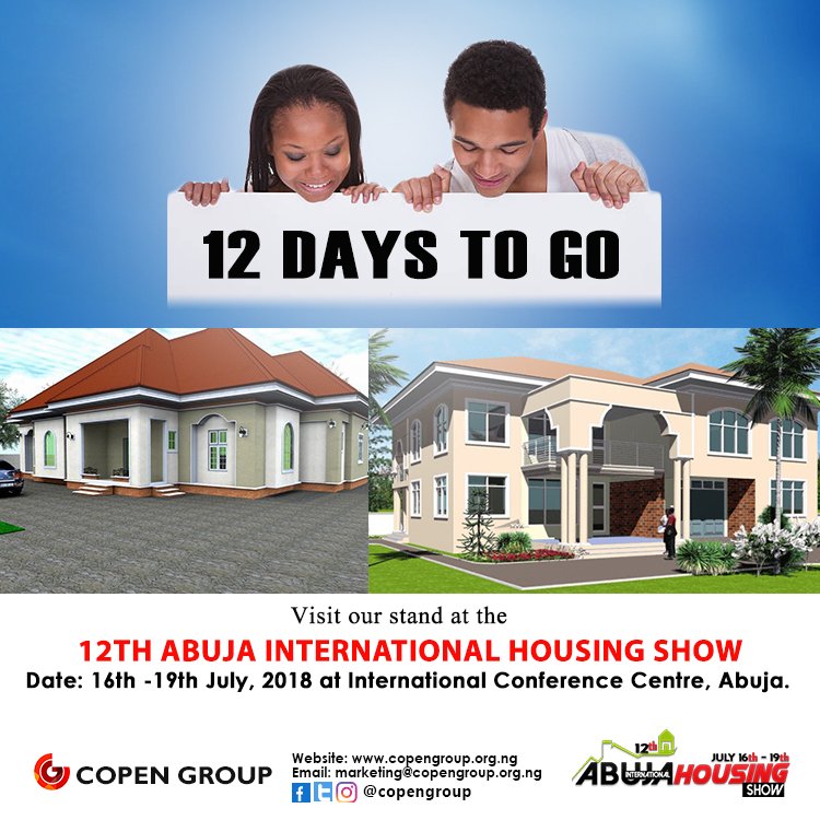 #12thAbujaInternationalHousingShow.#CopenGroup of companies will be live in the event. Visit our stand and choose from the home options we have for you. http://www.copengroup.org.ng#12DaysToGo#CountDownpic.twitter.com/E4kaUtqaha