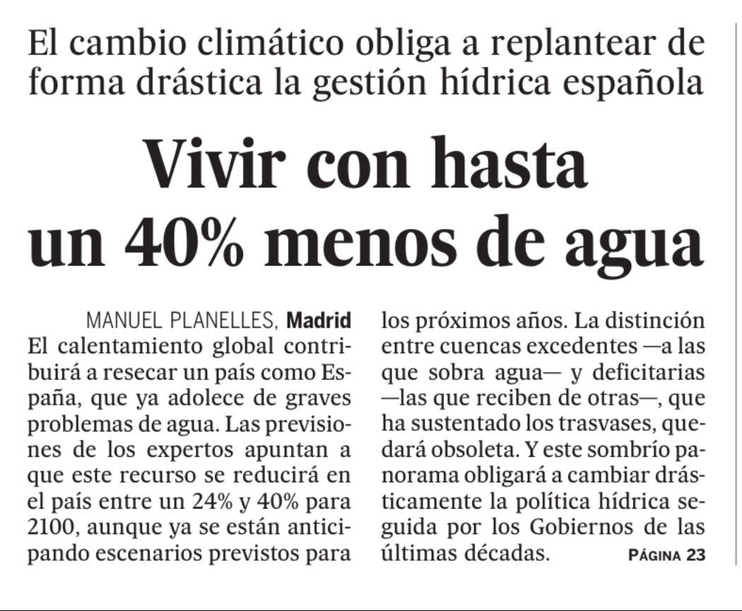 #cambioclimatico reducirá drásticamente la disponibilidad de agua en España. Es hora de repensar las políticas agrarias. La agricultura consume el 85% del recurso. La agricultura ecológica se abre paso.#DíaMundialDelAgua#FridaysForFuture#15MClimático pic.twitter.com/GMUEBCtvC8