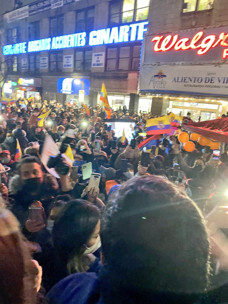 Multitudinario recibimiento de los migrantes ecuatorianos, al candidato presidencial de