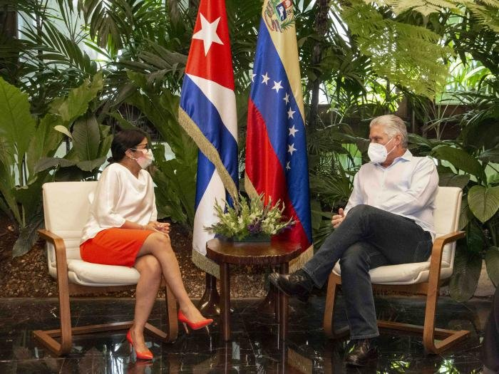 | La vicepresidenta Ejecutiva de la República, @delcyrodriguezv fue recibida este viernes#16Jul por el presidente de Cuba,@DiazCanelB, como parte de una visita de trabajo en la mayor de las Antillas.#HéroesDeVerdad#CubaVivapic.twitter.com/Na6fsOGXci