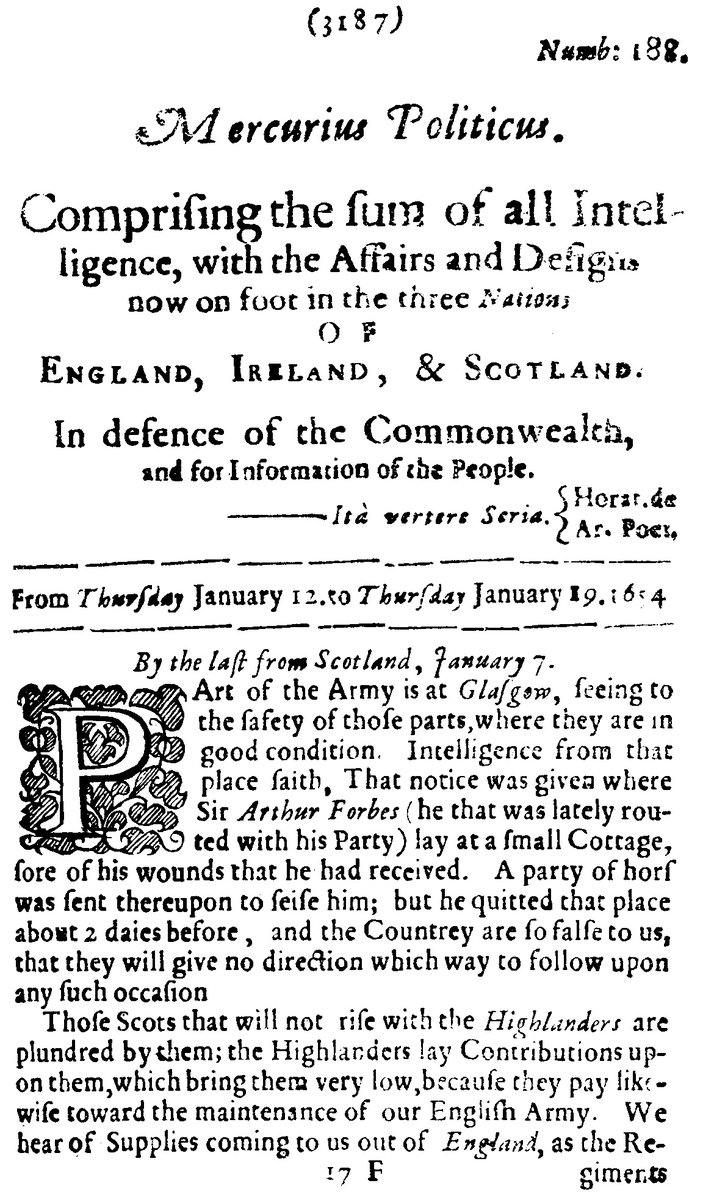 #17thCentury. He supported Parliament until 1647, the King 1647-1649, then for Parliament with 'Mercurius Politicus' from 1650. He used satire, mockery & controversy to popularise the news. 2/2 pic.twitter.com/xKsdmxbQx7