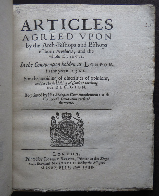 THIRTY NINE ARTICLES RELIGION 1633 CHURCH ENGLAND Common Prayer DOCTRINE