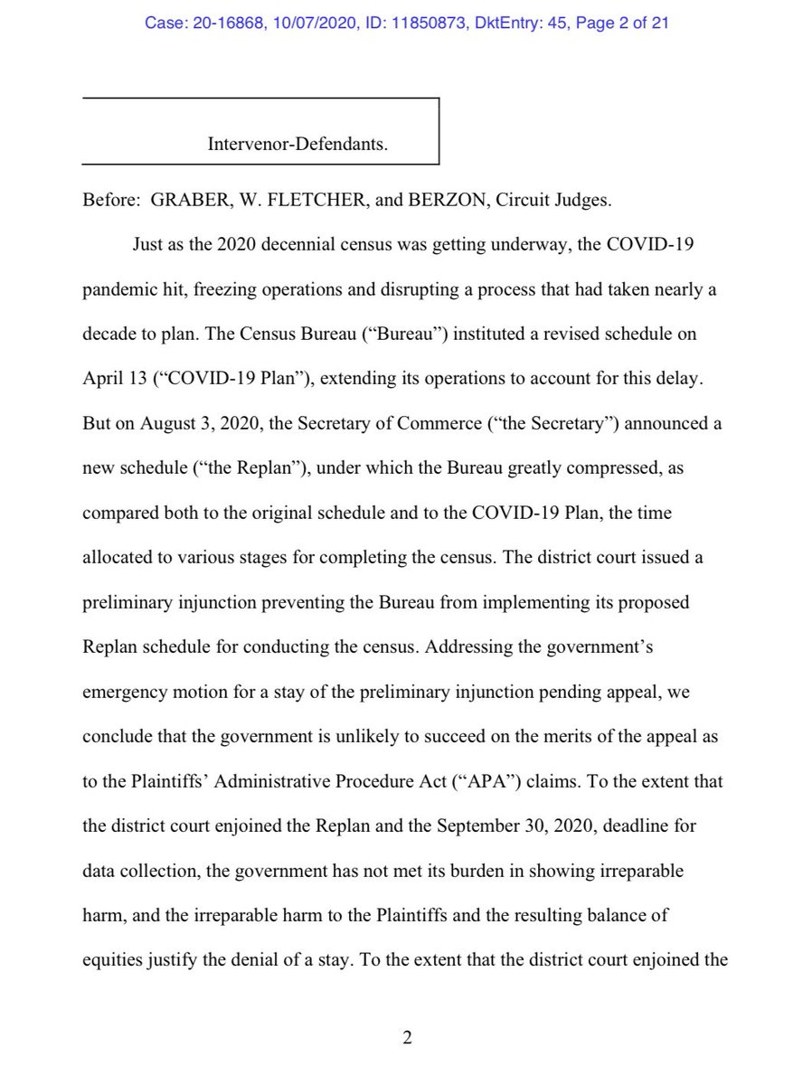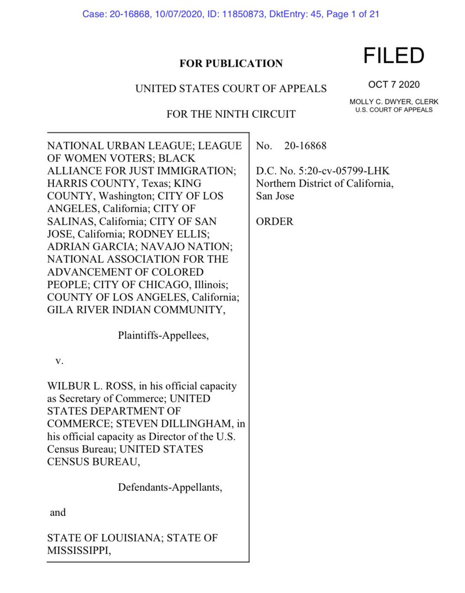 #2020Census counting before Oct. 31. From a 3-judge panel of the 9th Circuit: https://assets.documentcloud.org/documents/7223133/National-Urban-League-Oct-7-2020-9th-Circuit-Order.pdf …pic.twitter.com/krLzxT8Jb1