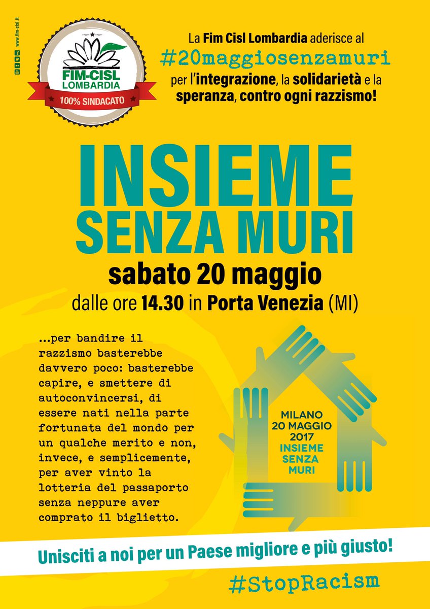 #20maggiosenzamuri tra i 100mila partecipanti a#marciamigranti tanta#Fim a rimarcare impegno a realizzare società + giusta contro razzismopic.twitter.com/gVTwIFklTb