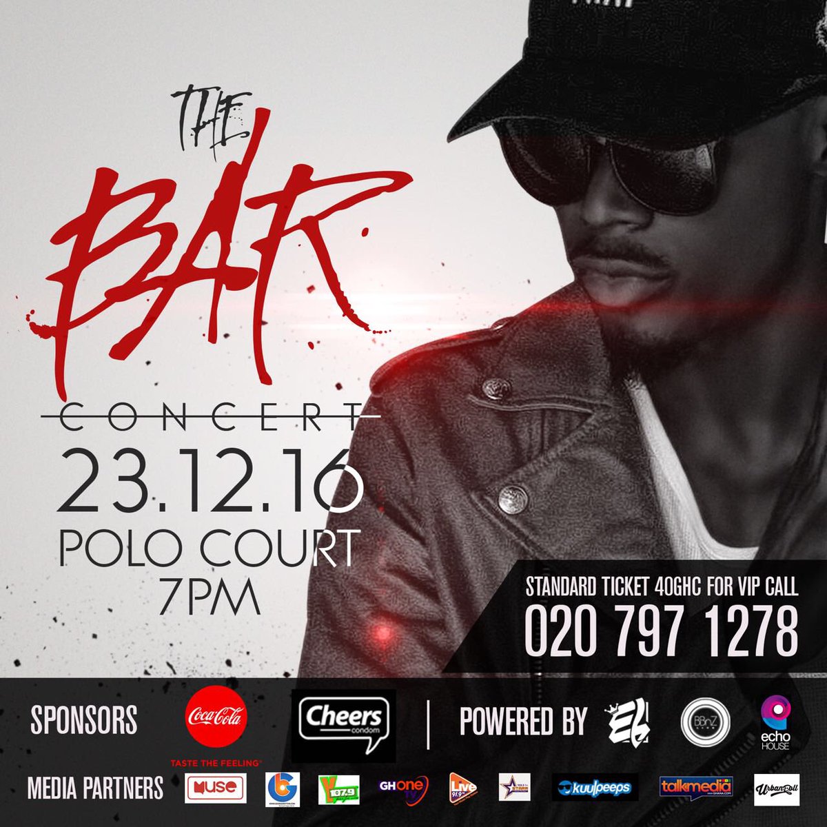 #BarConcert Tickets at Airport Shell, Cupcake Boutique, Chix and Ribs, Blossom and Wednesday#23rdDecember at the Accra Polo Court pic.twitter.com/iqWCVLUwPl