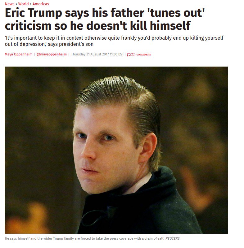 A reminder: Trump's own son said negative coverage makes him suicidal. He might not even survive impeachment!