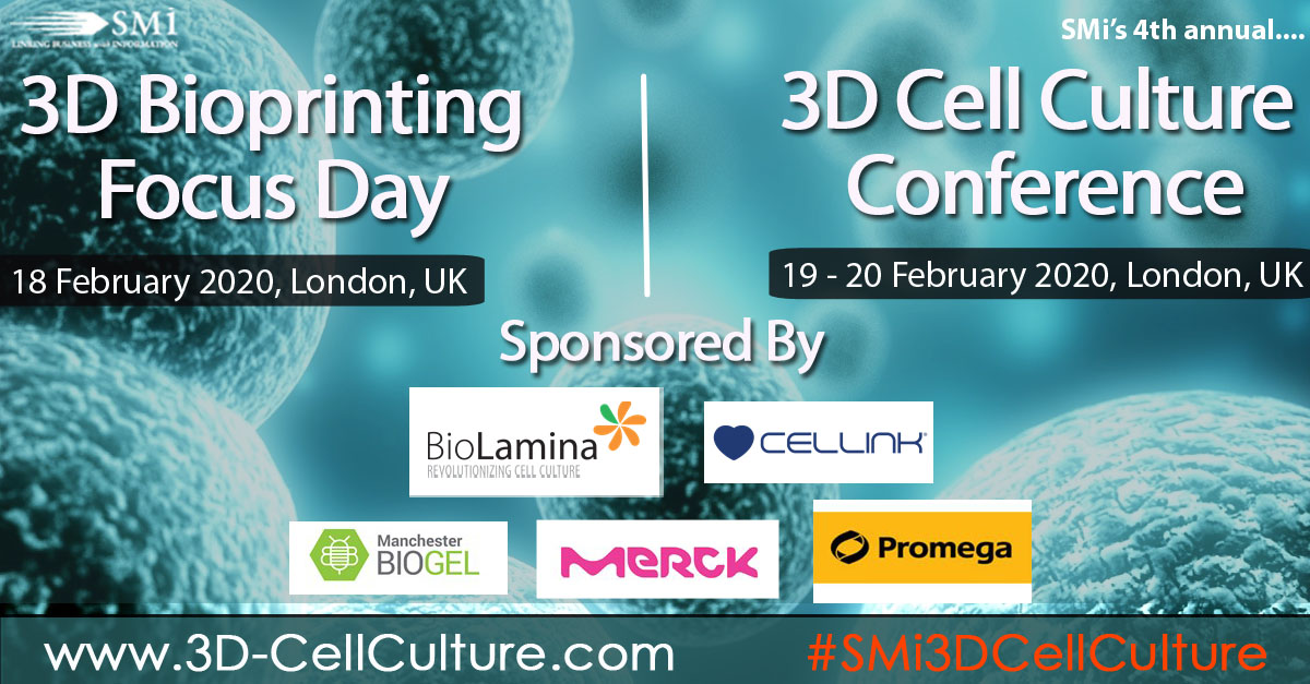 Exclusive sponsors will be speaking and exhibiting at 3D Cell Culture Conference in London on 19-20 Feb 2020 and Focus Day 3D Bioprinting, with only 4 weeks to go you can still register your place at http://www.3d-cellculture.com/TW
