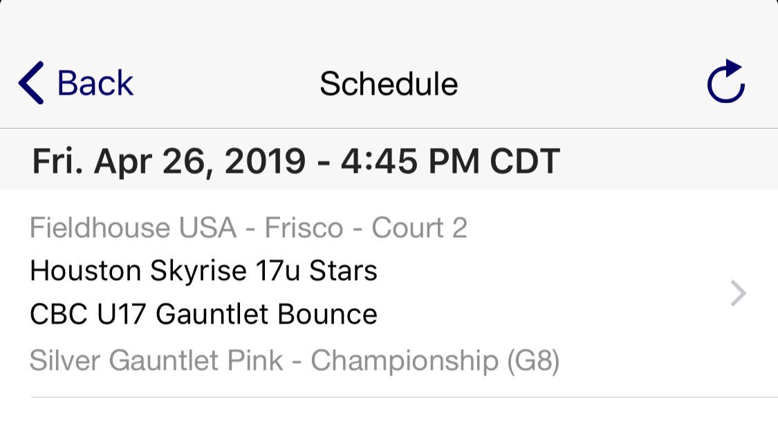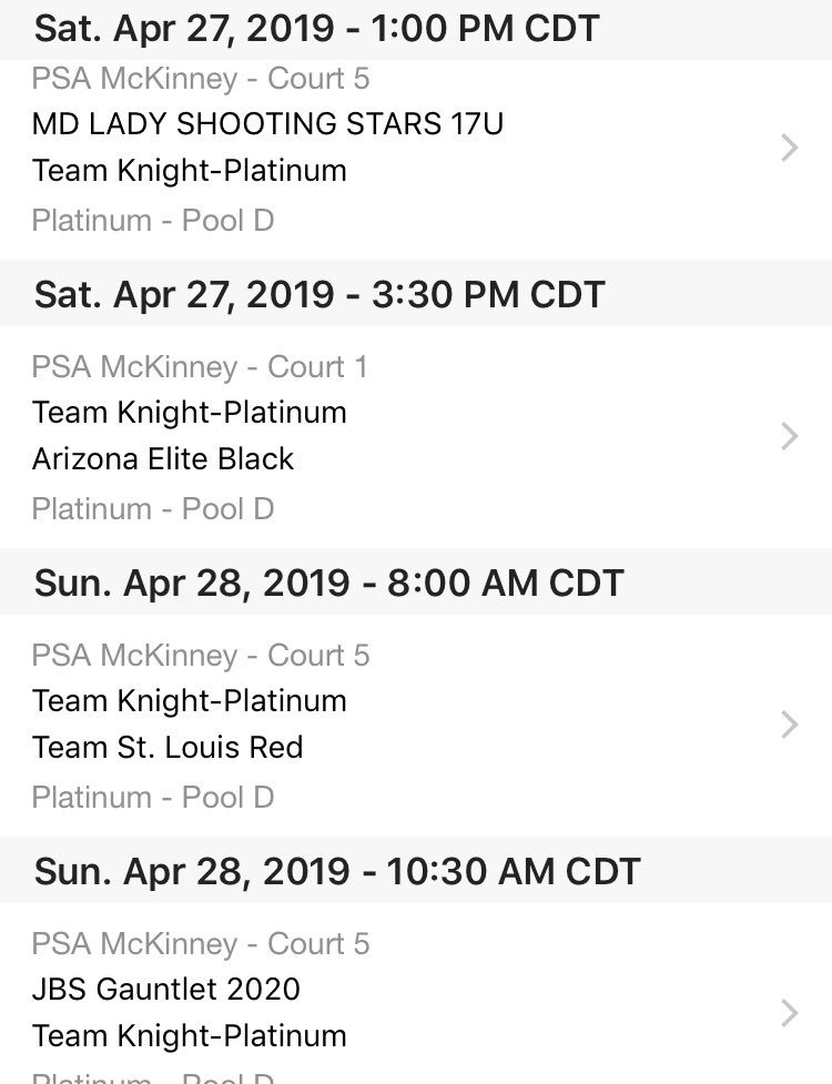 Texas LoneStar Red’s schedule for the April 26th-28th Adidas Gauntlet Gold Division at PSA McKinney, Texas
