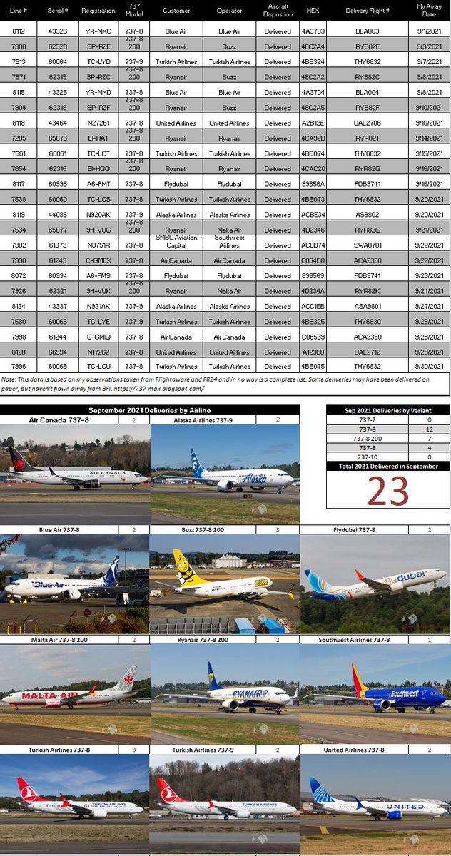 Delayed Data - Based on my data and tracking, I have put together the following data on the September 2021 Boeing