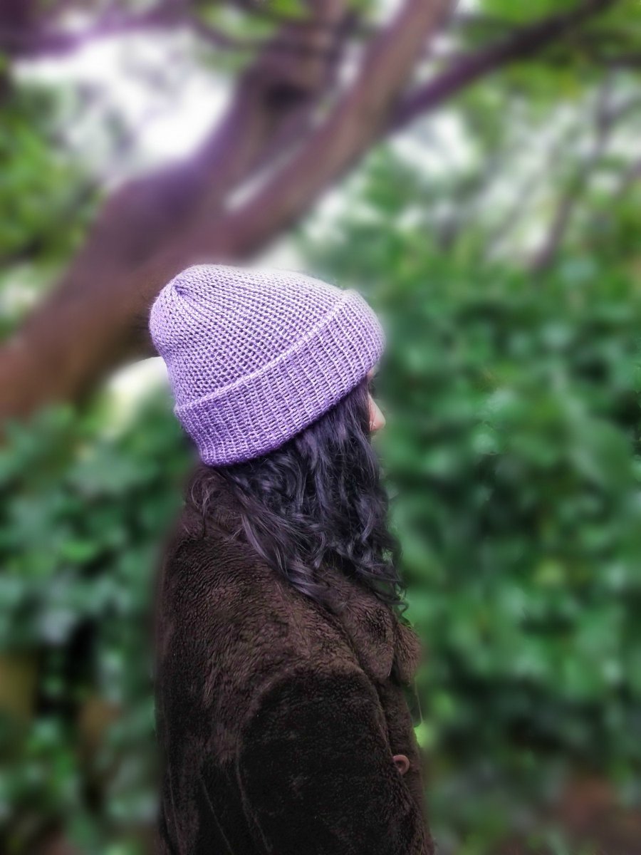 Violet purple knitted hat, handmade with soft acrylic wool, can be worn as a fisherman beanie or slouchy hat, one size fits all, 90s grunge https://etsy.me/3ap68LD