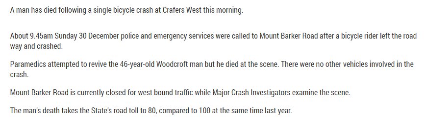 A man has died following a single bicycle crash at Crafers West this morning.