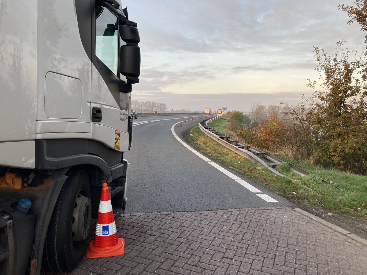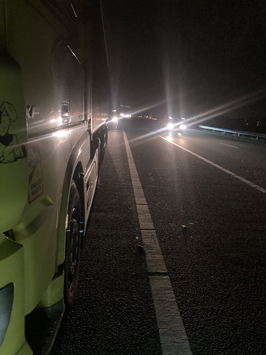 #A67 Li 71,0 bij#Velden staat een vrachtwagen die de toerit blokkeert. Hij is over een betonblok gereden waardoor er lucht leidingen kapot zijn. De Berger is bezig om deze te herstellen!pic.twitter.com/d8Pwi5oMHZ