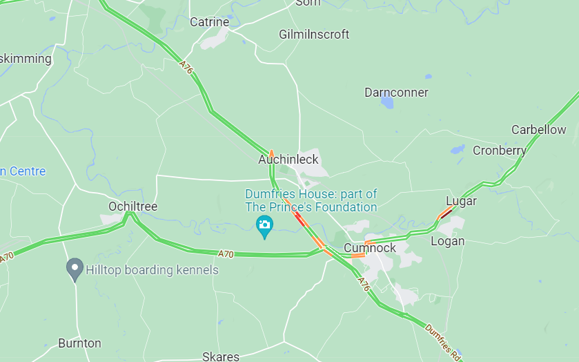 #A76 CLOSED in both directions at Auchinleck due to an RTC