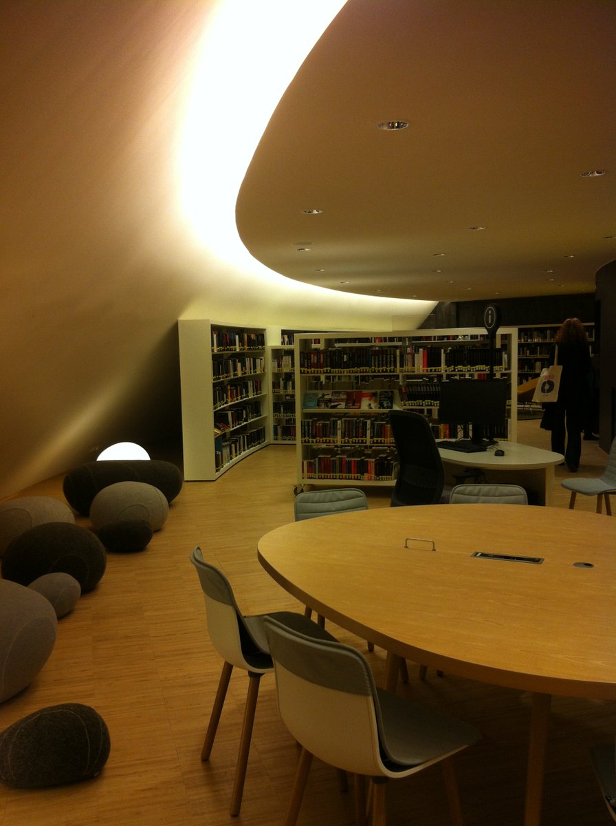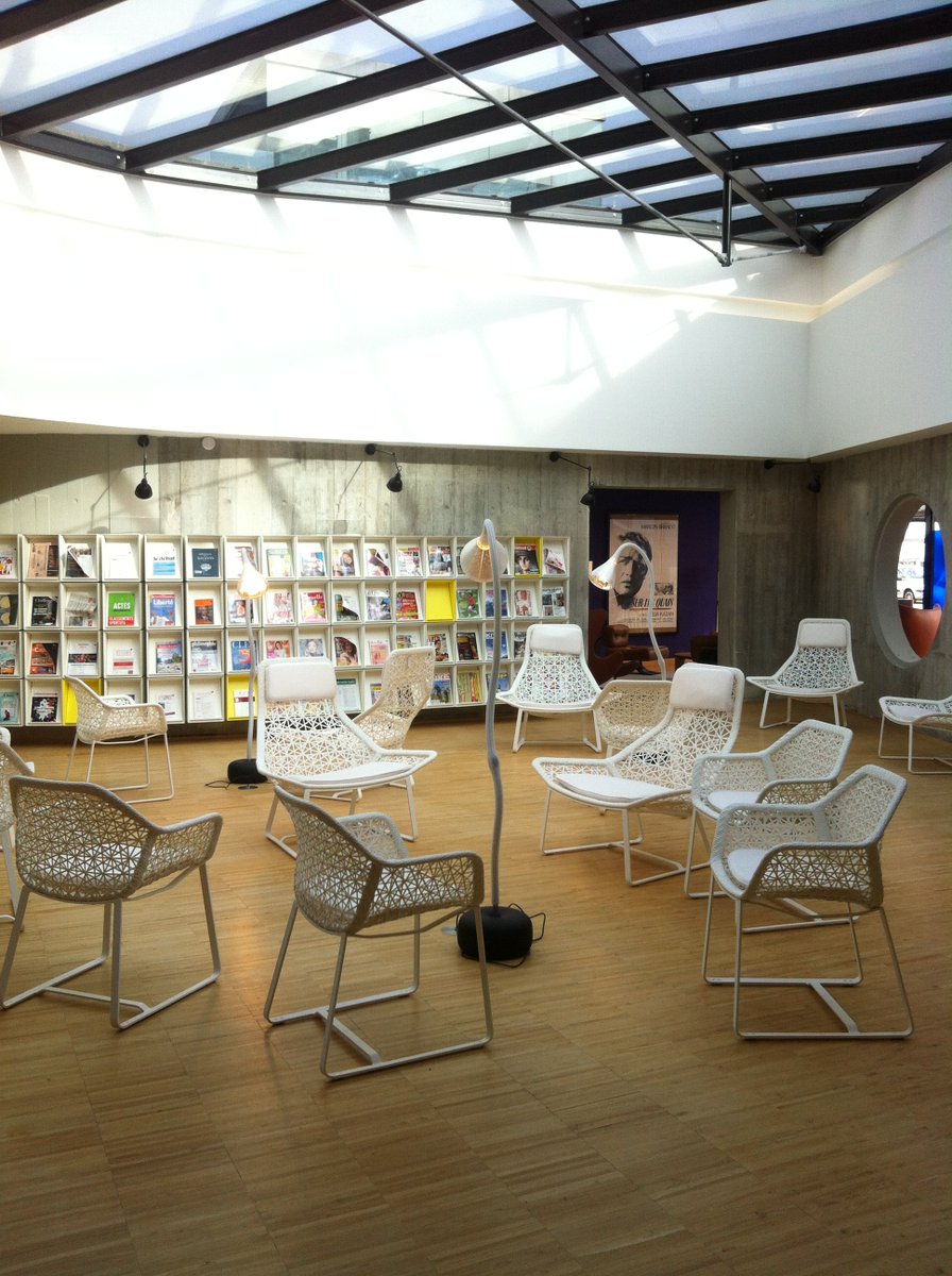 Inauguration de l'accueillante bibliothèque Oscar Niemeyer dans le petit volcan.
