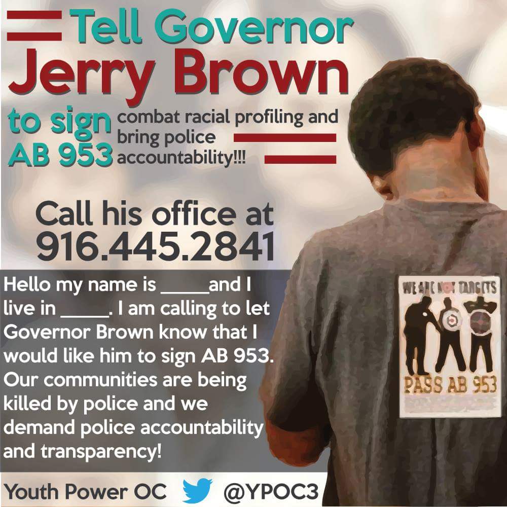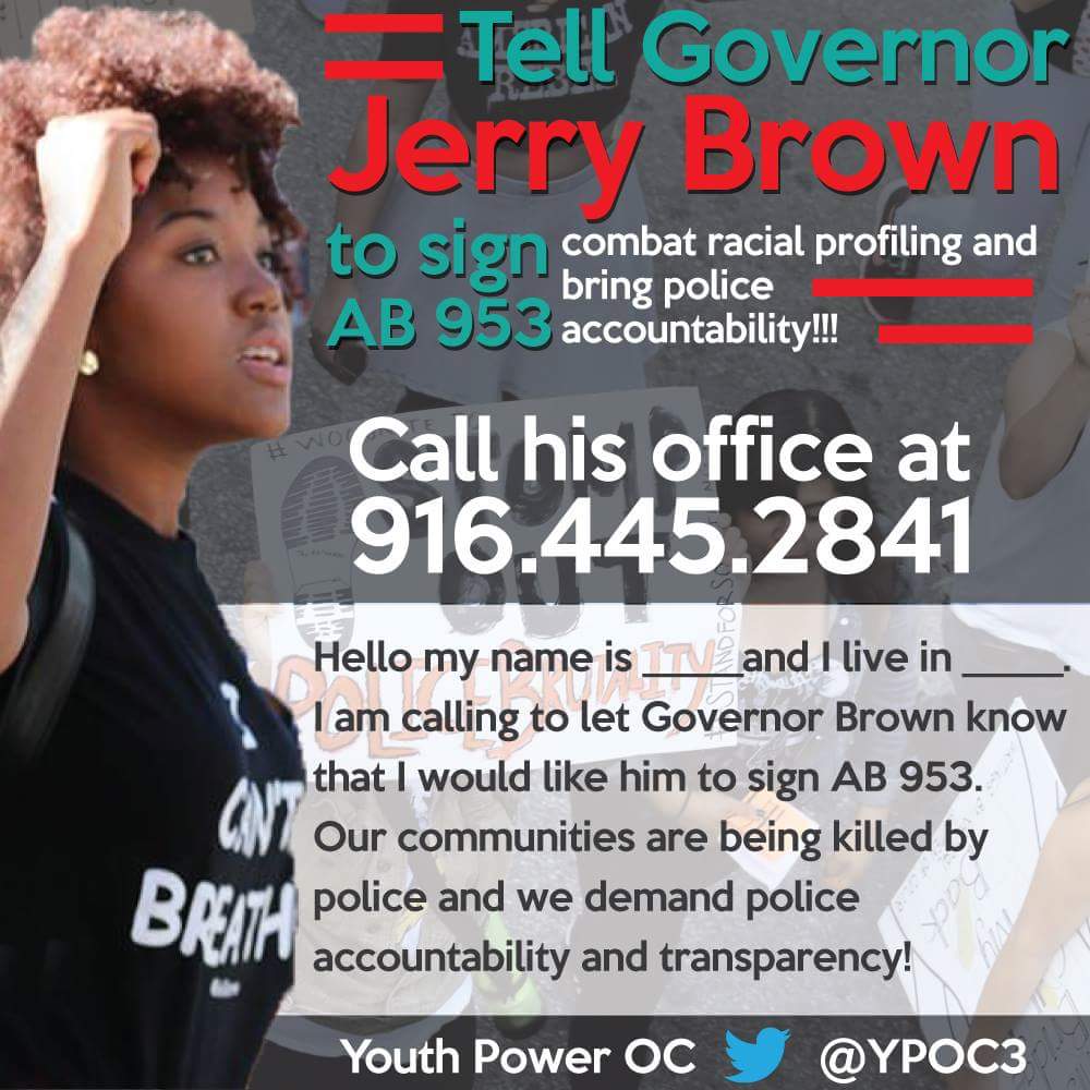 @JerryBrownGov to commit to signing#AB953#blacklivesmatter