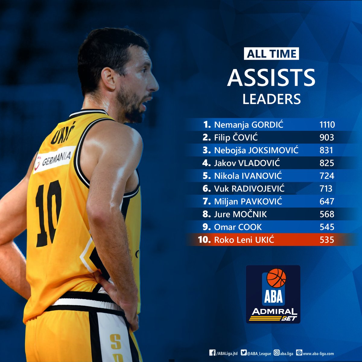 @kksplit_ player@RokoLeni10 for making it to the Top 10 of the AdmiralBet#ABALiga All-Time Assists Leaders list!