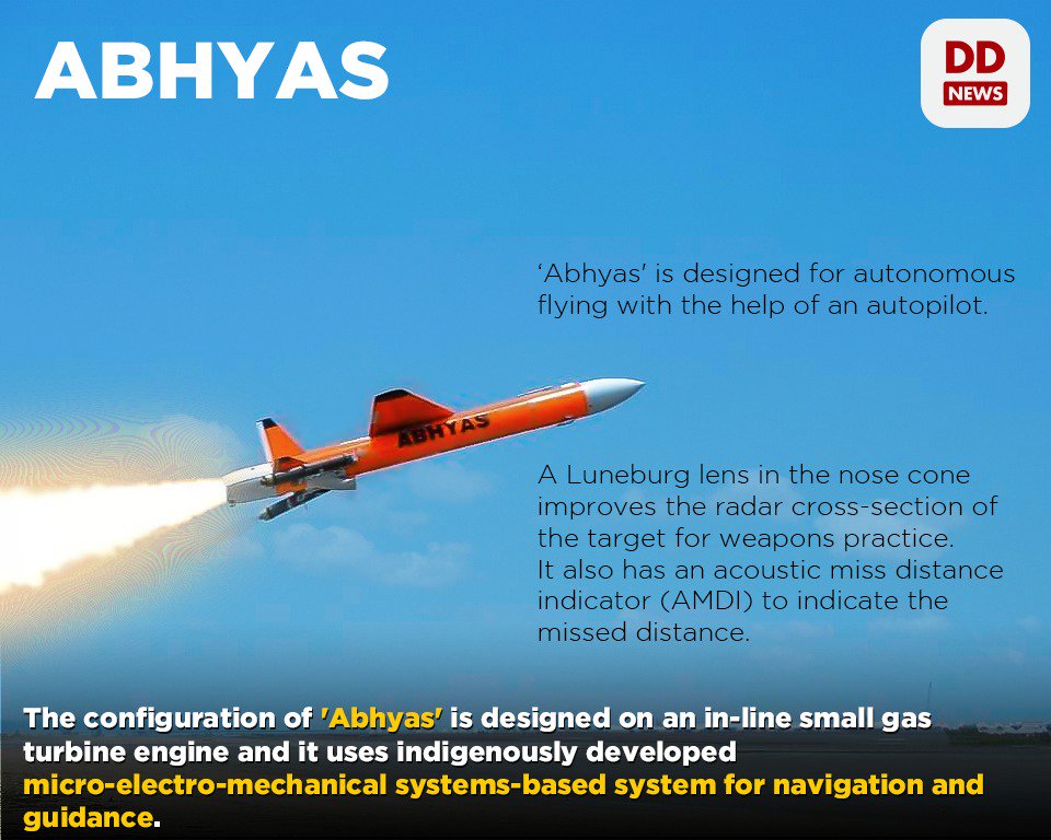 #India on Tuesday successfully flight tested#Abhyas, a high-speed target drone for practice of weapon systems with realistic threat scenarios. For the uninitiated, Abhyas is a high-speed drone that can be targeted by missiles during weapon systems practice. pic.twitter.com/9hC4pDIXkq