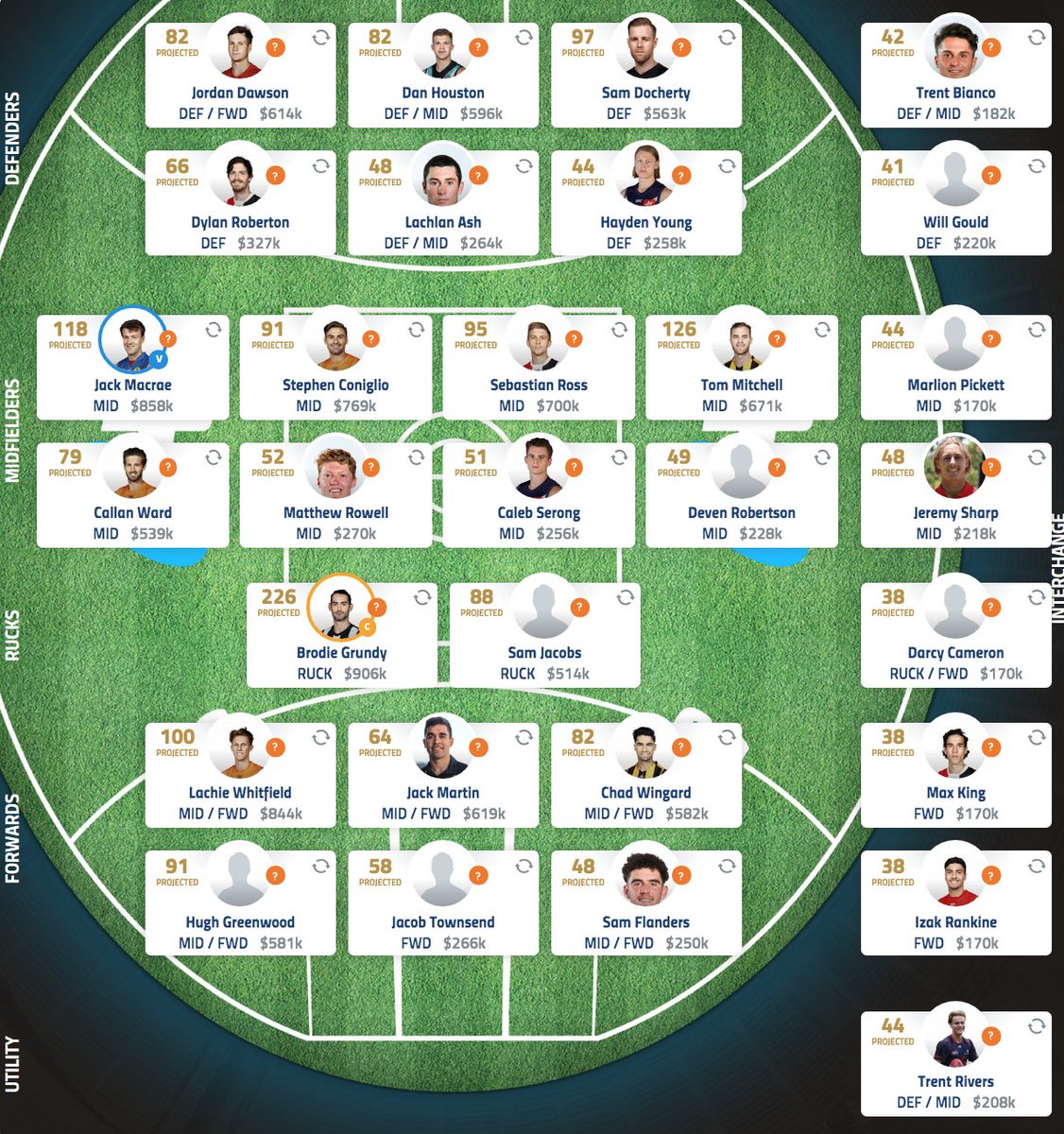 @AFLFantasy team and took out Grundy and replaced with ROB. I was able to significantly strengthen my fwd and def lines with the extra cash but there’s just something that doesn’t feel right about it. Anyone not starting with Grundy?@DTTALK#AFLFantasy -