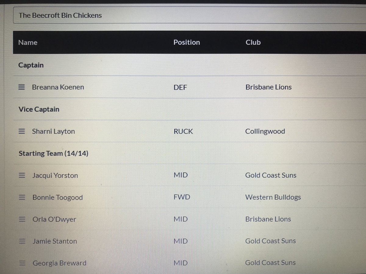 #AFLW round 1 side..quick fire summary -Kaslar at full forward (pre-seasons worst kept secret) -Ernst on the wing -10 AFLW debutants -7 GC products -Thorn and Roberts both stiff as emergencies but will get their chance -