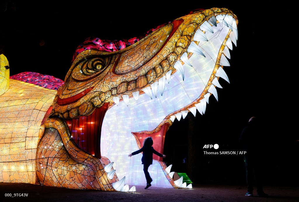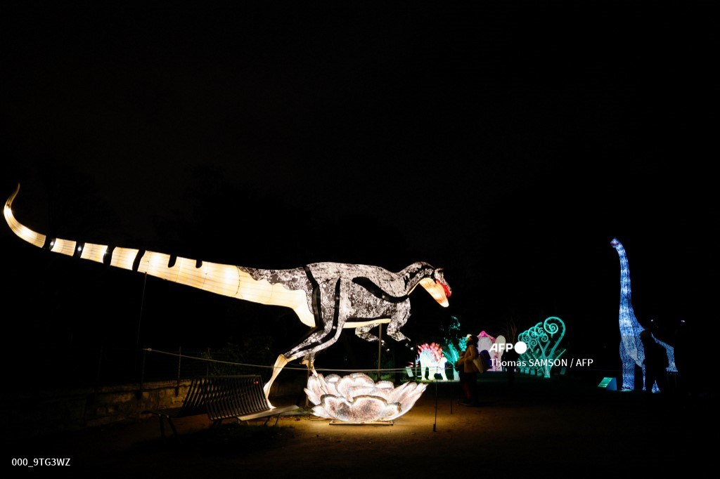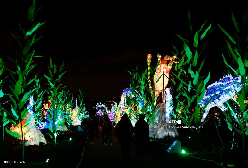 #France Giant illuminated sculptures are displayed during the Jardin des Plantes (Garden of Plants) Light Festival in Paris#AFP http://u.afp.com/wwrb