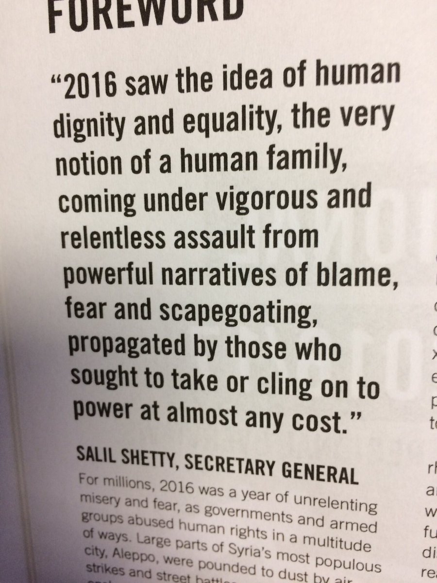 #Amnesty's Annual Report on#HumanRights: Worldwide toxic political agenda is dehumanising entire groups. https://www.theguardian.com/world/2017/feb/22/toxic-political-agenda-dehumanising-entire-groups-amnesty-warns …#AIR17 pic.twitter.com/yohXsbinD0