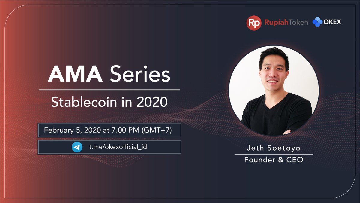 We would love to invite you to join our AMA Session “Stablecoin in 2020” with Jeth Soetoyo, founder and the CEO of Rupiah Token! AMA will be held on Friday, February 7, 2020, from 7 – 8 pm (GMT+7) with