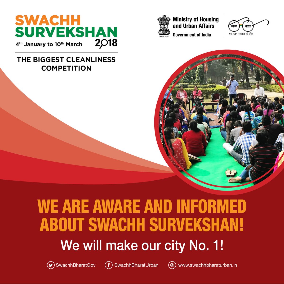 #SwachhSurvekshan2018 and help your city win!#MyCleanIndia#AMinute4Swachhata#SwachhBharatpic.twitter.com/d647sunzOj