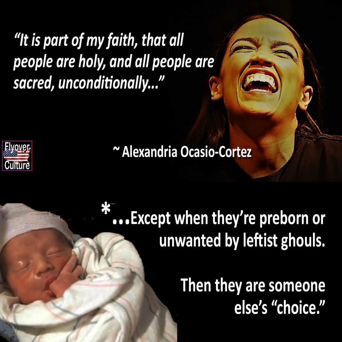 #AOC always claim to be more pious, moral people than the rest of us. But when it comes to killing babies? Never mind.#FlyoverORIGINAL#AOCStillAMoron pic.twitter.com/5ARcbK5H6v