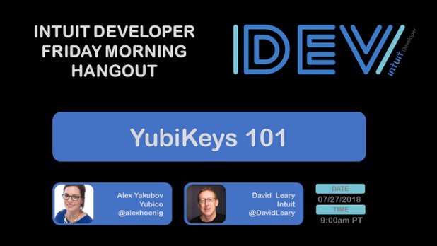 #JustBooked for an upcoming@IntuitDev Friday Morning Hangout:@alexhoenig from@yubico will be joining us to tell us all about Yubikeys. RSVP here: http://ht.ly/R0Ce30hRIJt#SmallBiz#SaaS#API#OpenAPIpic.twitter.com/FK9DV1qS1u