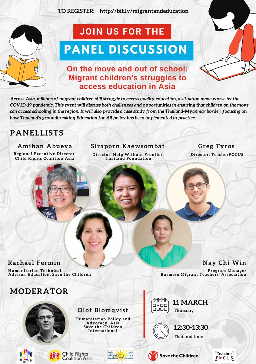 Join us tomorrow to discuss the challenges and opportunities in ensuring that migrant children can access schooling in the region. The event will also highlight a case study on education in the Thailand-Myanmar border. Register here: http://bit.ly/migrantandeducation …