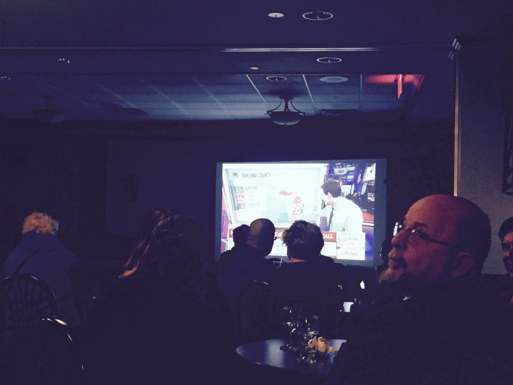 Big applause here when Clinton announced as winner of...California! It's that kind of night for the Democrats,