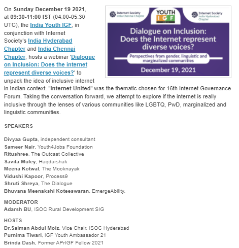 #inclusion: Does the#internet represent#diverse voices?#IGF#ISOC#Digitaldivide#APRIGF#disabilityinclusion#LGBTQIA#rural#APSIG2021pic.twitter.com/KQC4eBHYXG