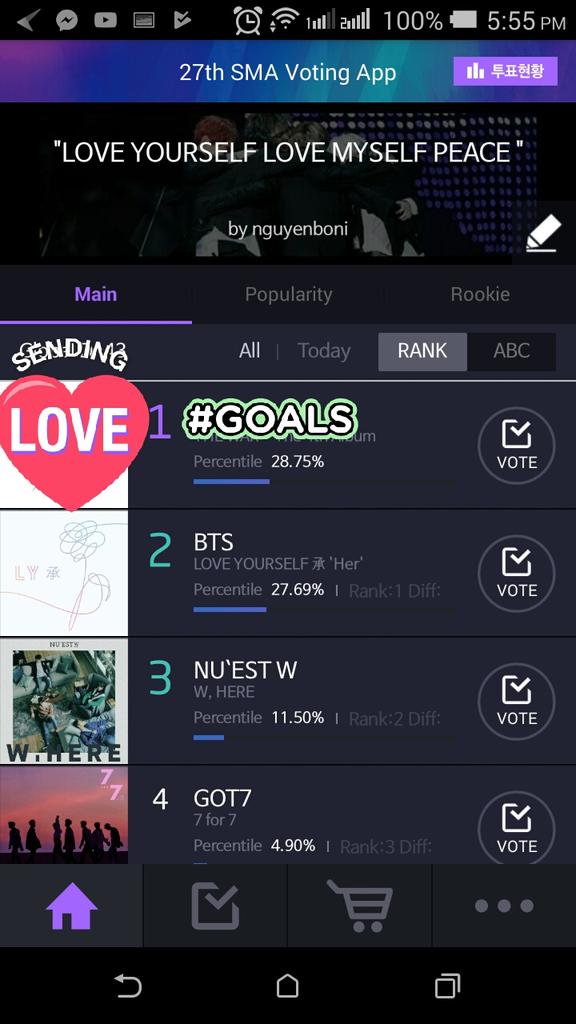 Voting on SMA starts now. Voting will end on January 22, 2018 at 24:00 KST. SMA awards show will be on January 25, 2018 at 19:00 in Gocheok Sky Dome. Let's not waste our time on antis but instead we should focus in voting. Vote BTS on the app.