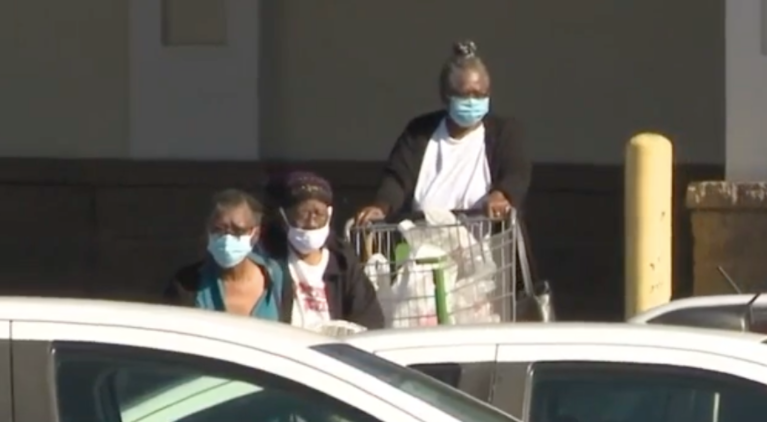 Long line of cars waiting to pick up food for the holiday at Watershed during these difficult times.
