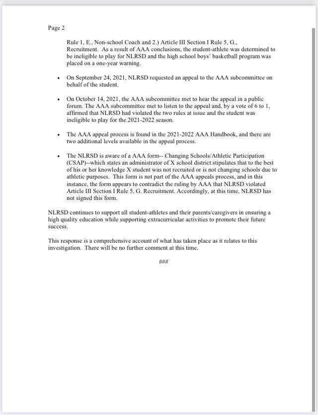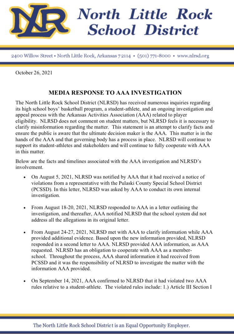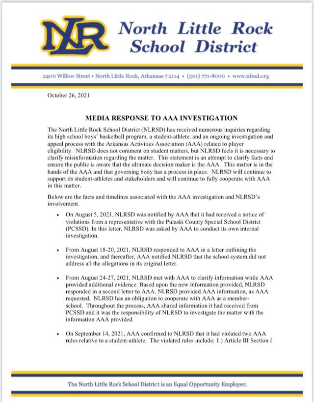@NLRSD regarding the investigation and eligibility of Nick Smith Jr.#arnews#arprepspic.twitter.com/BDTut20vLi
