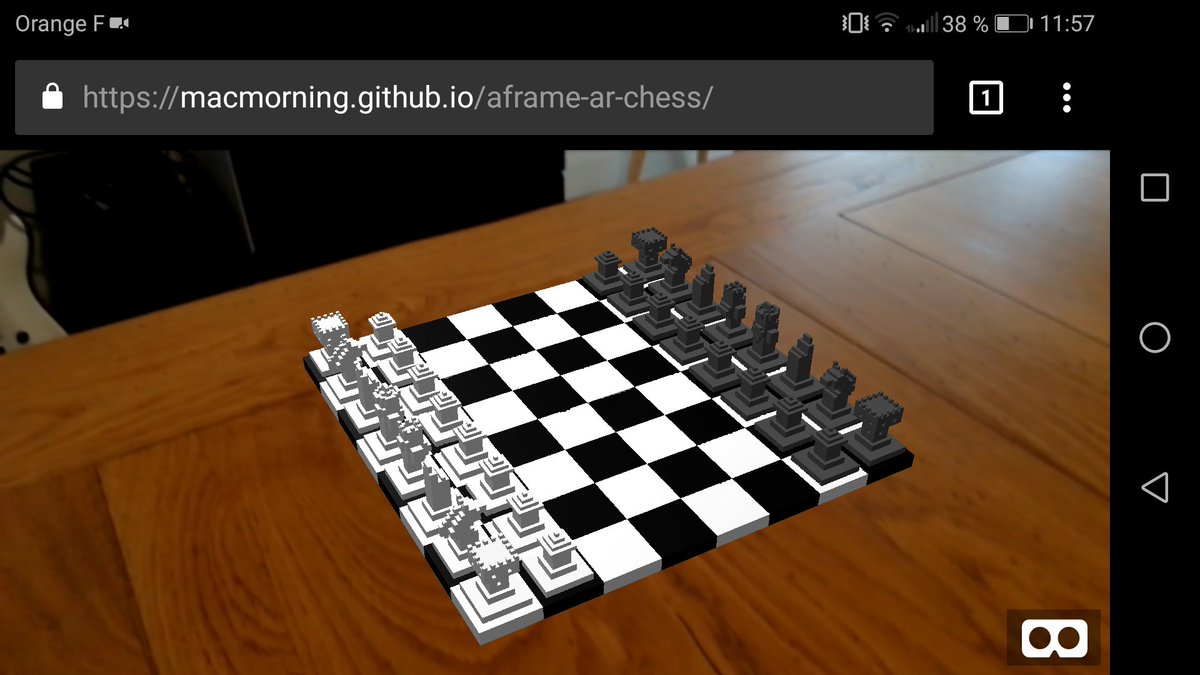 @aframevr and@jerome_etienne#ARjs. That was so easy ! We have some amazing tools, thank you guys. https://github.com/macmorning/aframe-ar-chess …pic.twitter.com/yivgQ7SQVA